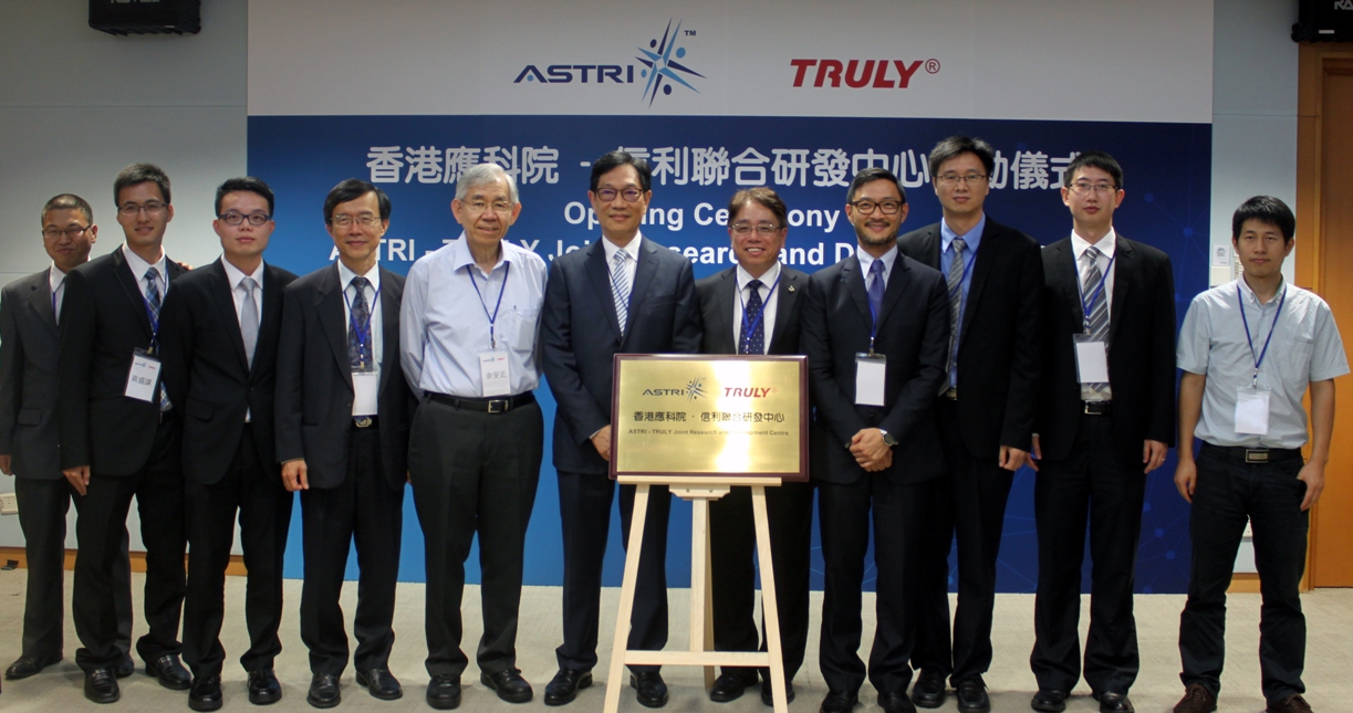 雙方今天特別舉行「香港應科院•信利聯合研發中心」啟動儀式,由應科院署理行政總裁廖家俊博士及信利國際執行董事黃邦俊先生主禮,並由應科院董事局主席王明鑫先生,以及香港特別行政區創新科技署科學顧問余安正教授、信利國際代表謝雄才先生、李孟祥先生、馬亮先生共同見證。